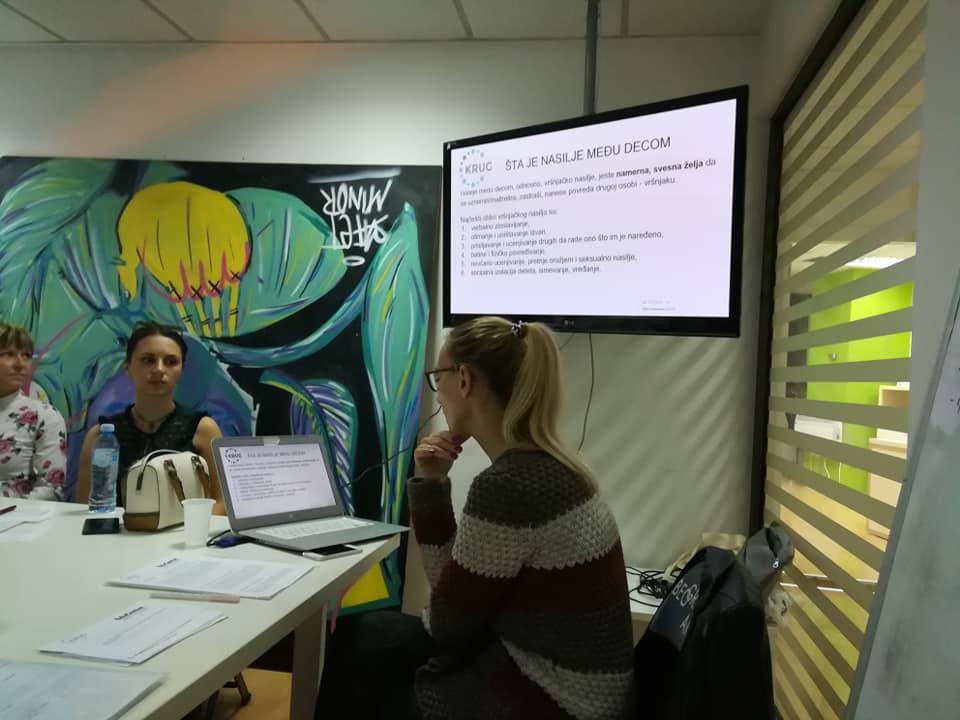 U saradnji sa Centar Krug, EDUCENTAR je kreirao seminar „Saradnja sistema socijalne zaštite i prosvete na zaštiti dece od vršnjačkog nasilja”, prijavljen kod Komore za socijalnu zaštitu i donosi 5 bodova stručnog usavršavanja. Ovog puta su obuci prisustvovali i stučnjaci iz Čačaka i svojom energijom i entuzijazmom doprineli kvalitetu rada.